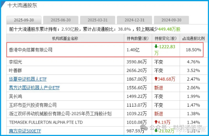 这时,一个关键角色登场了——香港中央结算有限公司作为北向资金代表,已稳居前十大流通股东之列。